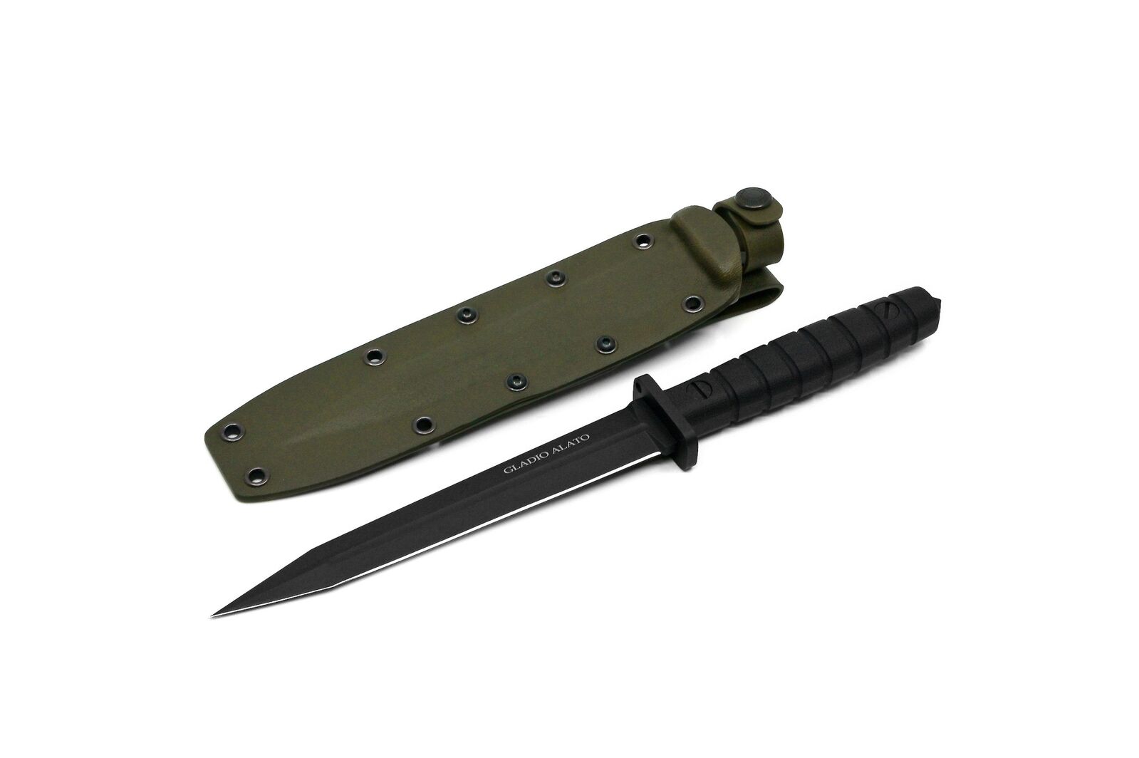 The “Gladio Alato” project was created to provide the personnel of the “66th Airborne Infantry Regiment Trieste” with a specific fixed-blade knife that incorporates the spirit, symbolism, and needs of the unit. The squared blade is reminiscent of the Gladius from which it takes its name, and the handle is a classic military tactical dagger design, but with a high-grip texture.